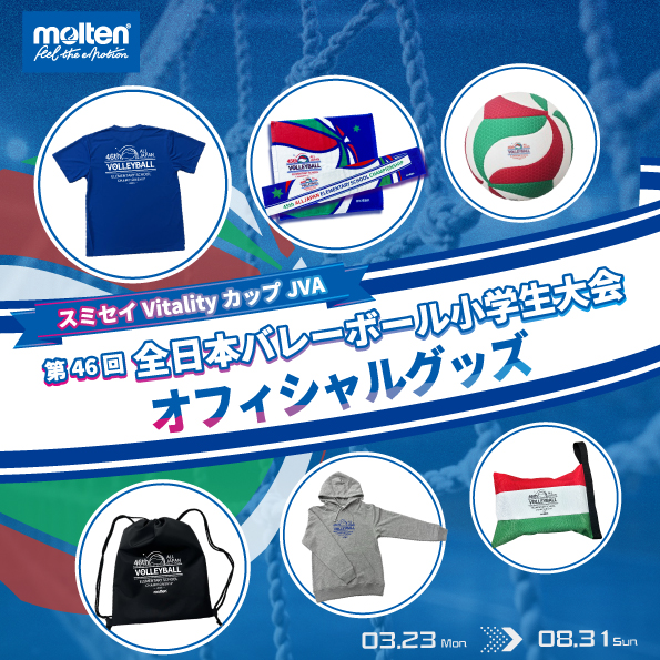 ●スミセイVitalityカップ JVA第46回 全日本バレーボール小学生大会 オフィシャルグッズ販売について (販売開始まで今しばらくお待ちください) ![]() |